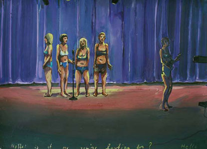 Frans van Tartwijk link naar website van Frans van Tarwijk 1982 – 1987 Academie voor Beeldende kunsten, Arnhem (ongebonden kunsten) Solotentoonstellingen: 1991 Werken op papier Taras Bulba, Amsterdam 1992 Schilderijen Galerie K , Alkmaar 1997 Over straat lopen, in bed liggen, het bos inrijden… Archipel , Apeldoorn 1998 Frans van Tarwijk Hogeschool van Amsterdam 1999 Altijd vakantie (met Guda Koster) Galerie Retort, Amsterdam 2001 Blijer, fitter, schoner Galerie Kunstkeizer, Amsterdam 2003 Solo De Schone Kunsten, Haarlem KunstRAI Amsterdam , De Schone Kunsten|Galerie, Haarlem 2004 Rutland, Deïska in de vitrines , Rembrandtplein, Amsterdam. 2005 Frans van Tartwijk,de Schone Kunsten|Galerie, Haarlem. Groepstentoonstellingen: 1990 Amsterdam- Moskou Galerie Dom 100, Moskou 1992 Mens erger je niet Taras Bulba, Amsterdam 1994 Denkbeelden- de Chinese Encyclopaedia Archipel Apeldoorn 1996 Wat de koningin ook mag zien W139 Amsterdam 1996 Doorlopende voorstelling Galerie Seedorff, Amsterdam 1998 4 schilders Galerie Singel 74, Amsterdam 1998 Twee uit vijf Nieuwe vide , Haarlem 1999 Tekententoonstellingen –1 CBK- Nijmegen 1999 De Samenzwering De Parel, Amsterdam 2000 Schilderijen Motive, Amersfoort 2000 Plan Z Nieuwe Vide , Haarlem 2001 Groepstentoonstelling De Kunstkeizer, Amsterdam 2002 Kunstenaars van Deïska DeÏska, Amsterdam 2002 Plek voor blanco De Schone Kunsten, Haarlem 2003 De grote Vakantie, Arti & Amicitiae, Amsterdam 2004 Let your pen do the talking,De Paraplufabrieken , Amsterdam 2003/2004 MOEDERN..KER, Artis, ’s-Hertogenbosch 2005 Tekeningen, werk op papier, Galerie Maurits van de Laar, Den Haag 2005 People like us, Artwalk , Amsterdam Van Stuk/ Offtrack ( met boek ), Nieuwe Vide , Haarlem tekeningen,KunstRAI Amsterdam, de Schone Kunsten|Galerie Subsidies en collecties: 1988 - 1993 Productiebudget, Gemeente Amsterdam 1989 Werkbeurs, Fonds BKVB, Amsterdam 1991, 1993, 1994 Beroepskostenvergoeding, Fonds BKVB, Amsterdam 1995, 1999 Basisstipendium, Fonds BKVB, Amsterdam 1997 Werkbeurs, Fonds BKVB, Amsterdam 2002 Geselecteerd voor de collectie van “Deïska”, Amsterdam Activiteiten: 1998 3 lezingen (Fransje Killaars, Frans van Tartwijk, Adriaan Nette) 1998-2002 CD-project Willem Kloos groep. De Willem Kloos groep speelde in de Balie, W 139, Perdu, en op Niet de Kunstvlaai, allemaal in Amsterdam; het “Crossing border festival, Den Haag en tijdens Lowlands, Biddinghuizen. 2000 CD–Jong Dichttalent, kindergedichten op muziek door de Willem Kloos Groep voor de VSB- poëzieprijs. 2000 Heimwee, drie schilderijen en drie liedjes in De Avonduren, Begane Grond, Utrecht. 2001-2002 Grote Vis, theaterproductie: 20 voorstellingen in Theater Zeebelt, Den Haag met Robert Baarda en F. Starik. | 01 zonder titel ![]() | 02 Hello ![]() | 03 interessant-gesprek ![]() | 04 Laptop ![]() | 05 Noordzee ![]() | 06 Performance ![]() | 07 zonder titel ![]() | 08 Feestj- bij-Rob ![]() | 09 Droom ![]() | 10 Vader ![]() | 11 M ![]() |