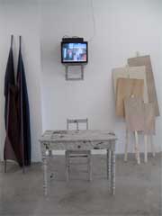 Flow Resolution Video-installatie en woven images Opening: vrijdag 31 Oktober 2003 21.00 - 23.00 u. Flow Resolution is de titel van Fendry Ekel’s solotentoonstelling bij de Schone Kunsten| Haarlem. Fendry Ekel (1971, Jakarta) woont en werkt in Amsterdam waar hij aan de Gerrit Rietveld Academie en Rijksakademie van Beeldende Kunsten studeerde. Het identificeren van zijn omgeving is een belangrijk thema in zijn werk. Naast formele en autobiografische aspecten bezitten de werken van Fendry Ekel eveneens een politieke ondertoon. Om bewust te zijn van zijn eigen positie moet Ekel de structuur van zijn omgeving verkennen. Zo zijn massamedia als televisie, internet en vooral de dagbladen een belangrijke inspiratiebron en materiaal voor zijn recente werken. De kracht en de macht, waarmee de informatiestroom ons dagelijks leven beïnvloedt, ervaart hij als zeer dominant. Wat-je-wilt-weten is veranderd in wat-je-moet-weten. Door de overvloed aan nieuws en de manier waarop deze wordt gepresenteerd, lijkt er steeds minder ruimte voor persoonlijke invulling. Om de informatie enige betekenis te geven, is het voor hem noodzakelijk ze te ordenen en te filteren. WOVEN IMAGES De galerie presenteert in deze solotentoonstelling, samen met een video-installatie, een serie recente werken WOVEN IMAGES. In deze werken combineert Ekel een vergrote, figuratieve zwart/wit afbeelding uit zijn fotoverzameling met een geschilderd monochroom vlak of spiegelfolie tot één beeld door beiden in stukjes te snijden en in elkaar te vlechten. De typische vierkantjes van het vlechtwerk doen denken aan de pixelresolutie van een groot opgeblazen computerbeeld. De figuratieve afbeelding wordt als het ware onderbroken en vervaagt. Pas op afstand wordt het beeld verscherpt. Bij het verzamelen van beelden afkomstig uit dagbladen en internet constateert Fendry Ekel, dat de beelden, die hem dagelijks schijnbaar onschuldig tegemoet komen, vooraf geredigeerd en zodoende volledig geclaimd zijn. Publieke informatie is niet langer gedeelde kennis maar eigendom van een uitgebreid netwerk. Een soortgelijke ervaring heeft hij met kleuren, die voor hem 'bezet' zijn door de manier waarop ze o.a. als politieke symbolen worden toegepast. Rood voor de nationalisten, Geel voor de bureaucraten, Blauw voor de aristocraten, Groen voor de Islam, etc. Vanuit deze bezette positie werkt Ekel met kleuren en beelden. Tussen de twee fundamentele kwesties - abstractie en figuratie - bij het schilderen beweert hij nooit te kunnen kiezen, omdat deze twee voor hem hand in hand gaan. Het snijden en vlechten van beelden is voor Fendry Ekel een manier om geselecteerde beelden, die onverwachts via de media zijn leven binnendringen, af te breken en te vertragen. (Haarlem, okt. 2003) Het identificeren van zijn omgeving vertaalt zich bij Fendry Ekel ook in een actieve opstelling. Zo is hij mede- oprichter van het nieuwe kunstenaarsinitiatief Space For Artists in Amsterdam. In 2002 initieerde hij GRID, een project waarbij kunstenaarcollega's Tiong Ang, Mella Jaarsma en Remy Jungerman en hijzelf een dialoog met elkaar aangaan met als centraal thema: culturele identiteit en verplaatsing. Het heeft plaatsgevonden in diverse steden in Indonesië in de vorm van tentoonstellingen, lezingen en workshops. In het Stedelijk Bureau Amsterdam is er onlangs een presentatie over het project en de catalogus/ magazine gehouden. Exposerende kunstenaar(s): | 1 ![]() | 2 ![]() | 3 ![]() | 4 ![]() | 5 ![]() |